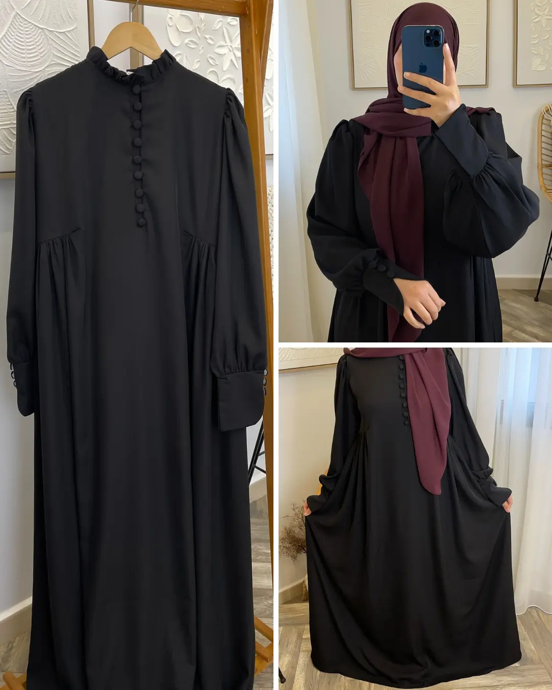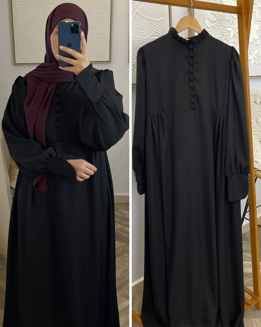 أكمام طويلة بأزرار مغطاة بنفس الثوب